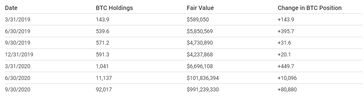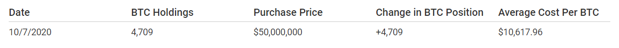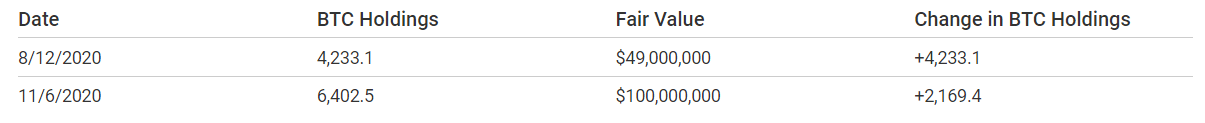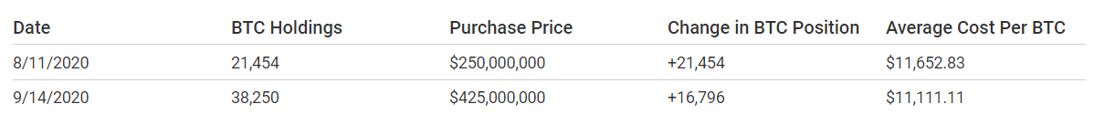MicroStrategy是一家开发商业智能软件的科技公司。该公司将比特币作为主要储备资产,今年8月,MicroStrategy宣布以2.5亿美元买入比特币,随后又买入了1.75亿美元的比特币。